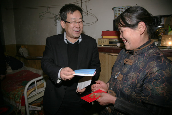 局長(zhǎng)宋志剛親自將退休養(yǎng)老金卡送到困難家屬手中,并送去慰問(wèn)金