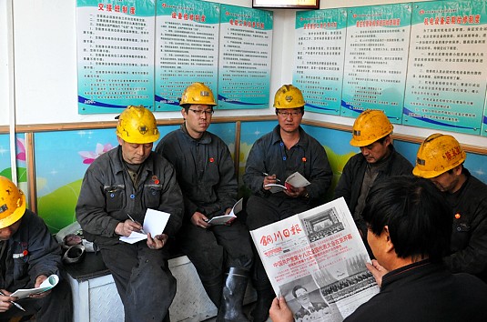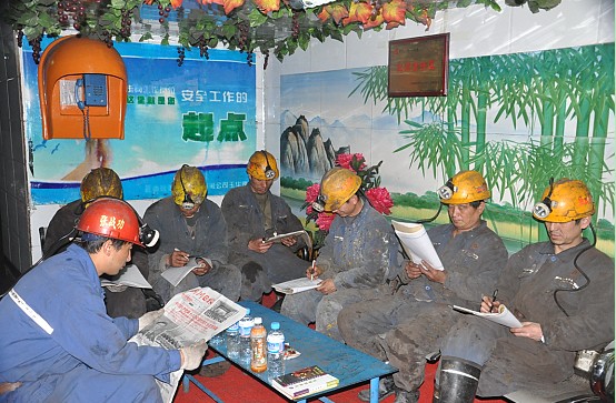 井下紅旗責(zé)任區(qū)職工休息時(shí)間學(xué)習(xí)十八大報(bào)告