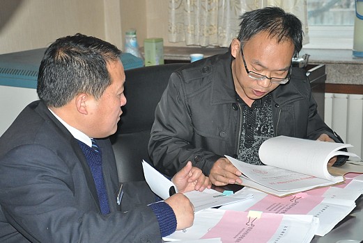 督導(dǎo)組成員仔細查閱玉華礦對標(biāo)管理工作各項基礎(chǔ)資料