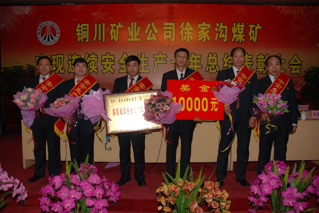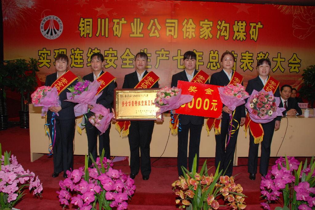 會上,公司副總工程師、安監(jiān)部部長延永華宣讀了《徐家溝煤礦實現(xiàn)連續(xù)安全生產七年關于表彰先進集體及先進班組的決定》;公司副總經理封建利宣讀了《銅川礦業(yè)公司關于表彰徐家溝煤礦實現(xiàn)連續(xù)安全生產七年的決定》。