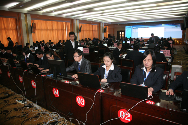 決賽分為上下兩半場。11月10日下午三點舉行上半場比賽,以會計基礎(chǔ)工作規(guī)范為考核重點,完成初期建賬、初始化和部分財務(wù)處理過程,以及工資和固定資產(chǎn)工作。11日上午進(jìn)行下半場比賽,完成部分會計業(yè)務(wù)處理并提交各種數(shù)據(jù)和報表,報表需要打印并對外報送,不再報送憑證、賬簿等資料。為了增加比賽競爭程度,還設(shè)置了傳票錄入、財務(wù)管理、總賬會計、成本會計、會計主管五個獨(dú)立競賽環(huán)節(jié)。