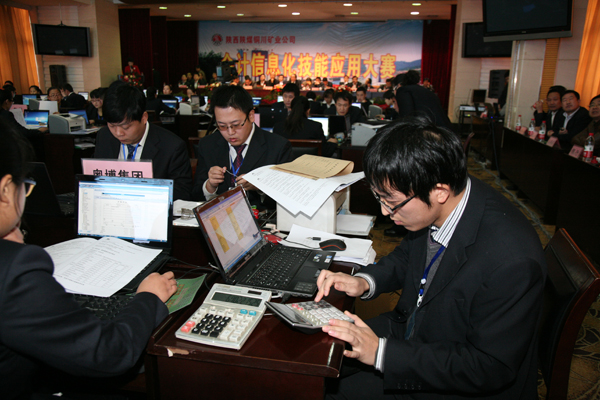 2011年,銅川礦業(yè)公司組隊參加了集團(tuán)公司和全國煤炭行業(yè)首屆信息化會計技能競賽。新穎的競賽模式充分考慮煤炭企業(yè)會計信息化發(fā)展的趨勢,突破了傳統(tǒng)競賽模式,具有仿真模擬、團(tuán)隊合作、綜合應(yīng)用、遠(yuǎn)程互動的競賽模式,讓人耳目一新,開闊了視野,鍛煉了隊伍。比賽結(jié)束后,副總經(jīng)理封建利向領(lǐng)導(dǎo)班子匯報了競賽情況,黨政領(lǐng)導(dǎo)高度重視,決定舉辦會計信息化技能應(yīng)用大賽,成立以總經(jīng)理宋志剛為組長,副總經(jīng)理薛鳴、封建利為副組長,財務(wù)部長郭建、審計部長黃麗華等為成員的競賽領(lǐng)導(dǎo)機(jī)構(gòu),聘請中國煤炭經(jīng)濟(jì)研究會部長陶冶為組長,山西財經(jīng)大學(xué)實驗中心副主任、教授徐慧泓,山西財經(jīng)大學(xué)教授梁麗瑾,山西財稅專科學(xué)校副教授原永娟為副組長的專家組,經(jīng)過五個多月的緊張籌備,通過前期的賽前培訓(xùn)、熱身賽和預(yù)選賽,掀起了提升員工素質(zhì),強(qiáng)化業(yè)務(wù)培訓(xùn)的熱潮。經(jīng)過刻苦訓(xùn)練,進(jìn)入決賽。