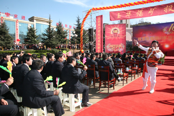 在舉國(guó)上下喜迎黨的十八大即將召開(kāi)的日子里,在百里礦區(qū)干部職工開(kāi)展“百日安全”活動(dòng)的關(guān)鍵時(shí)刻,玉華煤礦迎來(lái)了礦井投產(chǎn)十周年的大喜日子。11月1日上午,玉華煤礦鑼鼓喧天,載歌載舞,到處洋溢著歡樂(lè)喜慶的氛圍,慶祝礦井投產(chǎn)十周年,回顧十年來(lái)的建設(shè)發(fā)展,展示十年來(lái)的輝煌成就,瞻望玉華礦的美好未來(lái)。