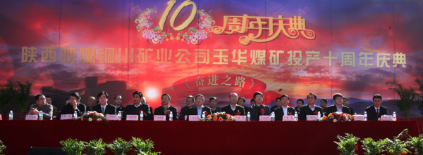上午10時(shí),玉華礦黨委書記唐建軍宣布“銅川礦業(yè)公司玉華煤礦投產(chǎn)十周年慶典大會(huì)”正式開(kāi)始。頓時(shí),會(huì)場(chǎng)內(nèi)外鑼鼓喧天,禮炮齊鳴!