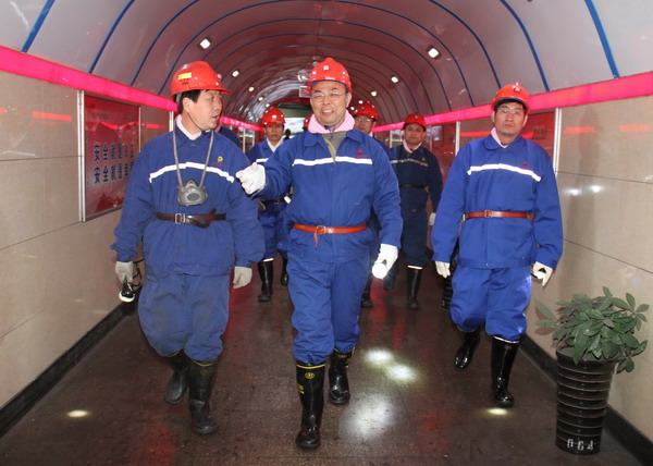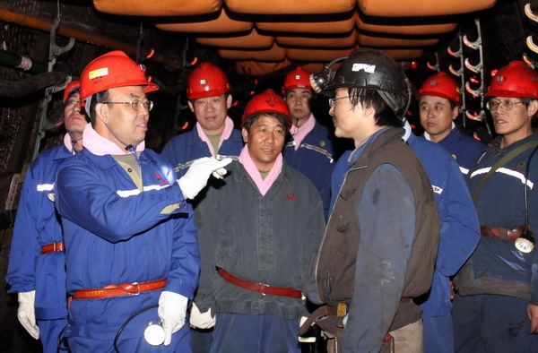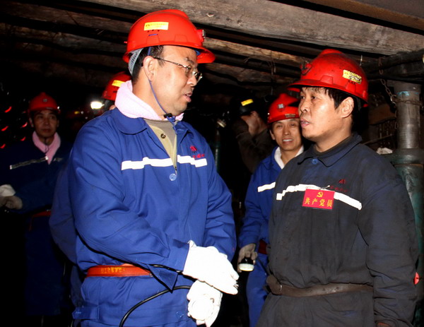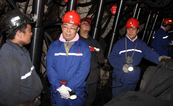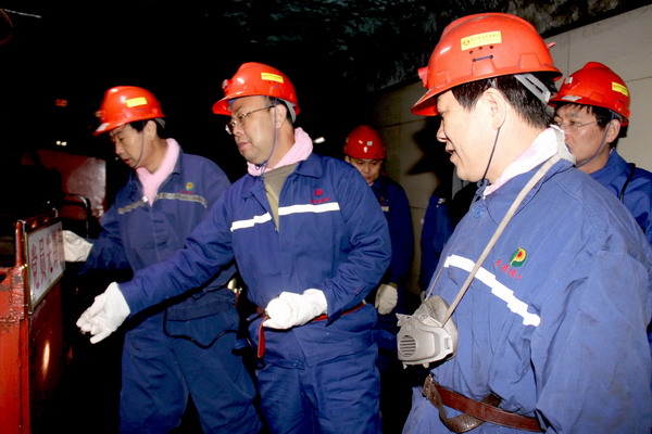 黃河書記到礦后,首先與該礦黨委班子成員進(jìn)行了座談,明確了這次到東坡礦的目的,聽取了東坡礦黨委書記李新忠、黨委副書記奚建國等領(lǐng)導(dǎo)就“爭創(chuàng)黨員先鋒崗、向十八大獻(xiàn)禮”安全競賽活動(dòng)開展情況的簡要匯報(bào)。隨后,黃河一行在該礦黨委書記李新忠等陪同下,深入該礦井下實(shí)地察看了安全競賽活動(dòng)落實(shí)情況及井下安全質(zhì)量標(biāo)準(zhǔn)化建設(shè)情況等。從礦燈超市到井口安全文化長廊,從架空人車巷到井下人車場,從井下職工生活服務(wù)區(qū)到綜采工作面,從入井到升井,一路上,黃河書記不僅仔細(xì)察看了沿途的安全質(zhì)量文化和質(zhì)量標(biāo)準(zhǔn)化建設(shè)情況,而且與隨同的該礦領(lǐng)導(dǎo)干部及正在井下上班的區(qū)隊(duì)干部職工進(jìn)行了親切交談,深入了解該礦“爭創(chuàng)黨員先鋒崗、向十八大獻(xiàn)禮”安全競賽活動(dòng)開展情況。在聽取了被該礦樹為黨員先鋒崗的礦燈超市職工和運(yùn)輸區(qū)區(qū)長穆忠亮、綜采一隊(duì)當(dāng)班跟班隊(duì)長、瓦檢員等同志就黨員對“爭創(chuàng)黨員先鋒崗、向十八大獻(xiàn)禮”安全競賽活動(dòng)的明確認(rèn)識(shí),和在安全生產(chǎn)工作中及各自崗位上應(yīng)負(fù)的職責(zé)及作用的回答后,黃河書記十分滿意,他說,十八大召開在即,作為煤礦就是要切實(shí)抓好安全生產(chǎn)工作,特別是黨員干部要率先垂范,在各自崗位上充分發(fā)揮好帶頭作用,確保會(huì)議召開期間礦井的安全生產(chǎn)。要把“爭創(chuàng)黨員先鋒崗”安全競賽活動(dòng)和公司正在開展的“百日安全”活動(dòng)等緊密結(jié)合,要做到常態(tài)化,在堅(jiān)持上下功夫,在創(chuàng)新與深入上做文章。