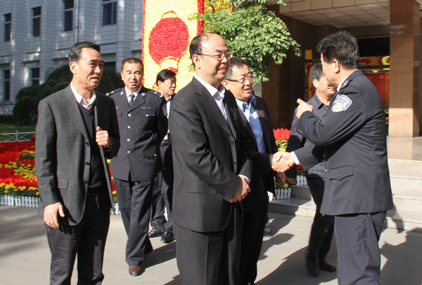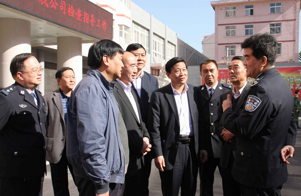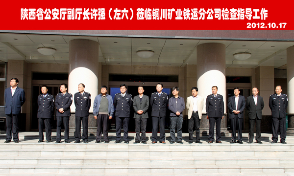 10月17日上午,省公安廳副廳長(zhǎng)許強(qiáng)、銅川市市委常委、市政法委書記袁丁興等一行蒞臨我公司檢查指導(dǎo)平安礦區(qū)建設(shè)工作。