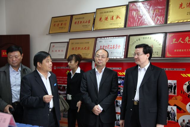 與會(huì)領(lǐng)導(dǎo)在王石凹礦黨群工作活動(dòng)室參觀(guān)