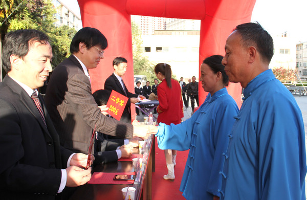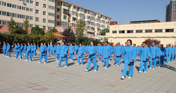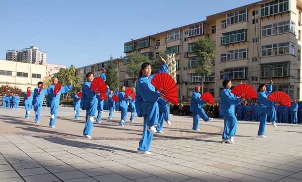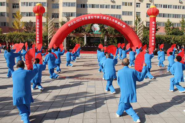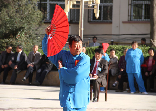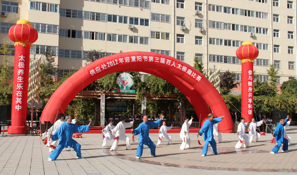 據(jù)了解,近年來,供應(yīng)處黨政為豐富廣大離退休職工的文化生活,提高大家的生活質(zhì)量和健康指數(shù),一直致力于關(guān)心、支持太極拳隊的發(fā)展,傾力把老同志的健身活動不斷推向深入。這次比賽是繼上兩屆“重陽節(jié)”大型活動后舉辦的第三屆迎重陽活動。供應(yīng)處離退休職工百人太極扇隊是在太極拳隊、太極劍隊的基礎(chǔ)上豐富發(fā)展的一個健身陣地,從太極拳到太極劍再到太極扇,這些活動越來越受到廣大離退休老同志的歡迎,參與人員越來越多,健身熱情越來越高,動作水平越來越好。為搞好這次活動,活動小組還特意邀請“銅川太極拳協(xié)會”的各位專家進(jìn)行評判和太極劍表演,邀請柔力球隊進(jìn)行助興表演。