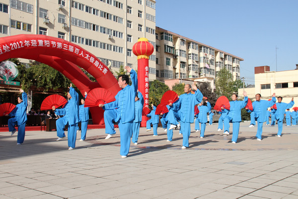 歲歲重陽,今又重陽。10月22日下午,供應(yīng)處馨苑小區(qū)文化休閑廣場陽光明媚、秋風(fēng)送爽,數(shù)百名離退休老同志洋溢在鶴發(fā)童顏、無比激動、無比幸福的喜慶氛圍之中。為讓老同志度過一個開心、快樂、有意義的節(jié)日,當(dāng)天下午,在往年太極拳、太極劍健身大賽活動的基礎(chǔ)上,經(jīng)過積極籌劃,供應(yīng)處黨政在這里又一次舉行了“重陽節(jié)‘百人太極扇’比賽”盛會。