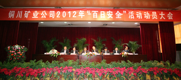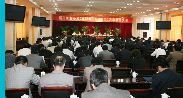 9月23日上午9時,銅川礦業(yè)公司在煤業(yè)賓館二樓會議室召開2012年“百日安全”活動動員大會。公司總經(jīng)理宋志剛,公司黨委書記黃河,黨委副書記、工會主席劉啟科,公司副總經(jīng)理、安監(jiān)局長劉水利,副總經(jīng)理、總工程師師同民,副總經(jīng)理薛鳴,原黨委副書記張志文,機(jī)關(guān)副總工程師、各部門負(fù)責(zé)人,八對生產(chǎn)礦井礦長、書記、安監(jiān)處長、工會主席、除跟班值班外其他礦級領(lǐng)導(dǎo)、安全科長、通風(fēng)科長、團(tuán)委書記,輔助單位主要領(lǐng)導(dǎo)、分管領(lǐng)導(dǎo)共150人參加了會議。會議由公司副總經(jīng)理、總工程師師同民主持。