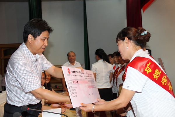 授牌儀式上,徐家溝礦黨委書記劉保社首先致辭,接著,礦區(qū)工會(huì)女工主任翟永俠宣讀了中國(guó)能源化學(xué)工會(huì)《表彰決定》,礦區(qū)工會(huì)主席劉啟科代表中國(guó)能源化學(xué)工會(huì),為榮獲全國(guó)煤炭系統(tǒng)工會(huì)女工家屬協(xié)管安全工作競(jìng)賽“先進(jìn)協(xié)管會(huì)”稱號(hào)的徐家溝礦礦嫂服務(wù)隊(duì)和被授予全國(guó)煤炭系統(tǒng)工會(huì)女工家屬協(xié)管安全工作競(jìng)賽“優(yōu)秀協(xié)管員”稱號(hào)的該礦協(xié)管員師玉蓮授牌并發(fā)放獎(jiǎng)金。徐家溝礦礦長(zhǎng)李福錦簡(jiǎn)要介紹了該礦“礦嫂服務(wù)隊(duì)”開(kāi)展活動(dòng)情況。