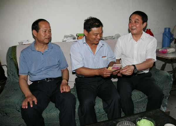 在陳家山礦,公司副總經(jīng)理、總工程師師同民仔細(xì)詢問了解了該礦困難黨員的基本情況,在陳家山黨委書記暢永光等人員的陪同下前往該礦困難黨員呂元靈、齊德川的家中進(jìn)行慰問。師同民與呂元靈及其家屬面對面交談,了解其家庭生活狀況后,鼓勵呂元靈“要樂觀面對,勇敢克服困難,有困難及時向黨組織反映,有組織的幫助一定能戰(zhàn)勝困難,繼續(xù)發(fā)揮共產(chǎn)黨員的先鋒模范帶頭作用?!睅熗裼H切的慰問鼓勵了他們戰(zhàn)勝困難的信心和決心,感受到黨組織和企業(yè)大家庭的溫暖。