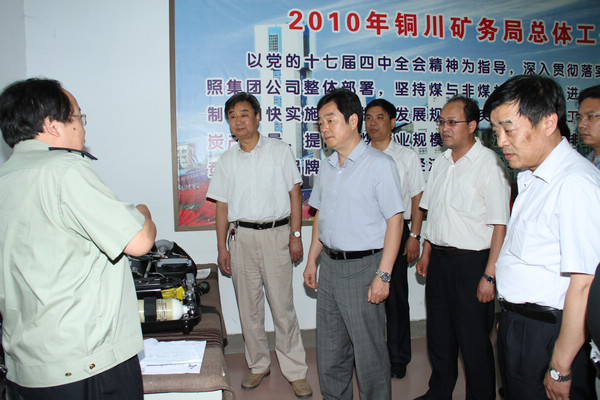 13日下午,高勤社一行首先到職工中??赐繂柫巳∥ㄒ粎⒓拥诰艑脟业V山救援技術(shù)競賽的銅川礦業(yè)公司集訓(xùn)隊(duì)。來到職工中專后,高勤社與在這里集訓(xùn)的12名救護(hù)隊(duì)員一一握手,向他們表示親切慰問,希望銅川礦業(yè)公司集訓(xùn)隊(duì)加強(qiáng)訓(xùn)練,提高水平,代表全省在9月份將要舉行的第九屆國家礦山救援技術(shù)競賽中取得優(yōu)異成績。高勤社一行還參觀了集訓(xùn)隊(duì)作訓(xùn)室、察看了集訓(xùn)隊(duì)訓(xùn)練場地及訓(xùn)練設(shè)備設(shè)施等情況。