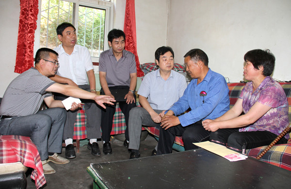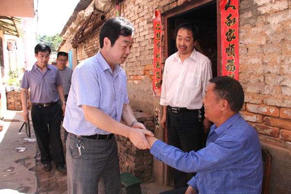 出了李水林家門,劉水利一行又趕到金華山礦,在金華山礦黨委副書記何剛等陪同下,先后走訪看望慰問(wèn)了幫扶對(duì)象、困難黨員何鋒輝和吳存保。今年35歲,居住在金華山礦13號(hào)家屬樓的該礦運(yùn)輸區(qū)職工何鋒輝,兩個(gè)兒子長(zhǎng)期患病,妻子無(wú)工作,生活十分熬煎。劉水利聽說(shuō)這一情況后,一邊把慰問(wèn)金送給何鋒輝,一邊鼓勵(lì)何鋒輝夫婦,一定要在組織的關(guān)懷下,克服一切困難,把孩子的病情當(dāng)做頭等大事抓緊治療。對(duì)劉水利一行的登門看望,何鋒輝夫婦十分感激,一個(gè)勁兒地感謝組織的關(guān)懷,表示一定會(huì)通過(guò)實(shí)際行動(dòng)報(bào)答組織的。來(lái)到金華山礦西山3號(hào)家屬樓,看到坐在家門口、手拄拐杖、言語(yǔ)艱難的吳存保,劉水利用雙手緊握著他的右手,告訴他:聽說(shuō)您的生活比較困難,我們代表公司黨委在“七一”來(lái)臨前專門來(lái)看望您的?,F(xiàn)年53歲,從事金華山礦安質(zhì)科安檢員工作多年的吳存保,因患腦溢血做手術(shù),癱瘓?jiān)诖矡o(wú)法工作,妻子又無(wú)收入,家庭生活困難。劉水利與隨行人員將吳存保攙扶在屋內(nèi),向他們夫婦仔細(xì)詢問(wèn)了解家庭情況,希望他們能夠克服困難,堅(jiān)強(qiáng)生活,人和家順,心想事成。