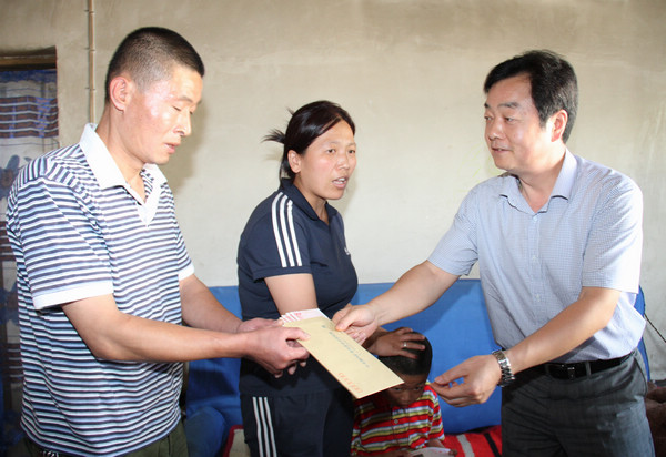 劉水利把組織的關(guān)懷送到困難黨員何鋒輝手中