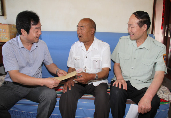 當(dāng)天上午,劉水利一行首先來(lái)到救護(hù)大隊(duì),與該大隊(duì)隊(duì)長(zhǎng)劉平治、黨總支書記童普選等進(jìn)行了座談,了解詢問(wèn)了該單位黨員基本情況。當(dāng)聽說(shuō)現(xiàn)年72歲的退休黨員李水林與老伴患有多種疾病,住院治療后,長(zhǎng)期服藥,兒女又長(zhǎng)年在外打工,生活比較困難的情況后,在劉平治、童普選等陪同下,劉水利一行深入救護(hù)大隊(duì)家屬樓3號(hào)樓,看望慰問(wèn)了李水林老人,見到李老后,劉水利代表黨組織把800元慰問(wèn)金遞到了他老人家的手中,并十分關(guān)切地說(shuō):“七一”快要到了,黨組織沒(méi)有忘記曾經(jīng)為組織做過(guò)貢獻(xiàn)的老黨員,今天,我們專門來(lái)看看您老人家和其他家庭困難的黨員,祝愿您和老伴身體健康,生活幸福。如果在生活等方面有什么克服不了的困難和問(wèn)題時(shí),請(qǐng)及時(shí)向黨組織反映,組織會(huì)想辦法幫助大家的。據(jù)救護(hù)大隊(duì)黨總支書記童普選介紹,李水林老人退休不忘黨,多年來(lái)一直十分關(guān)心黨和國(guó)家的大事,幫助該隊(duì)黨總支做了不少力所能及的事情。李水林老人還表示,只要身體還行,他會(huì)繼續(xù)關(guān)心黨和國(guó)家的大事,為組織盡自己一點(diǎn)微薄之力。
