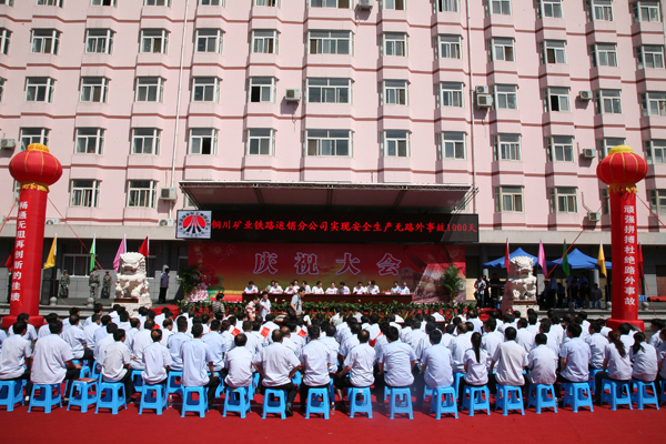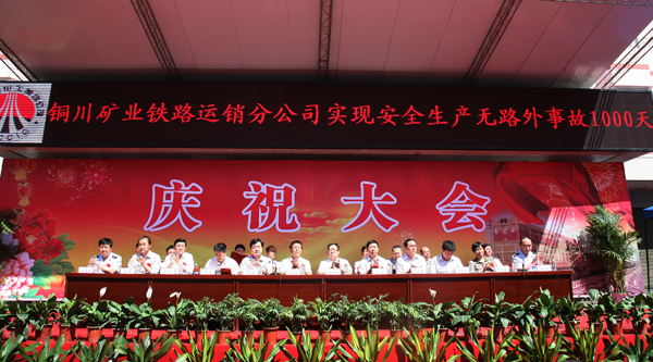 5月29日,銅川礦業(yè)鐵路運銷分公司順利實現(xiàn)安全生產(chǎn)無路外事故1000天,這是個值得祝賀的日子。銅川礦業(yè)公司總經(jīng)理宋志剛,黨委副書記、紀(jì)委書記徐捷,副總經(jīng)理劉水利、師同民、薛鳴、封建利和公司級領(lǐng)導(dǎo)張志文等與鐵運公司干部職工共同慶祝。社會各界友好人士、兄弟單位代表和礦業(yè)公司相關(guān)部室負(fù)責(zé)人等出席了在鐵運分公司辦公樓前舉行的隆重慶祝大會。