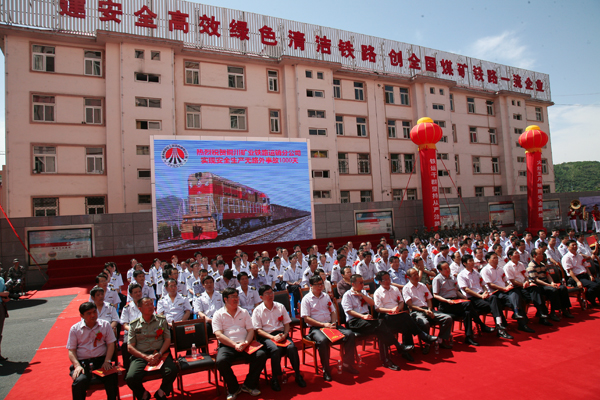 路外事故1000天的工作報告。他說,鐵運分公司擔(dān)負(fù)著礦區(qū)自營鐵路運輸煤炭的責(zé)任,由于礦區(qū)鐵路彎道多、區(qū)間半徑小、無人道口多,瞭望條件差,給安全工作帶來巨大壓力。分公司按照礦業(yè)公司總體要求,堅持以人為本,安全為天的理念,瞄準(zhǔn)“雙零”目標(biāo)不動搖,在礦業(yè)公司的大力支持和兄弟單位的密切配合下,不斷加大安全投入,安裝防護網(wǎng)30余公里,并更換了內(nèi)燃機車,平時注重精檢細(xì)修,排除一切安全隱患,創(chuàng)造出了安全生產(chǎn)無路外事故1000天的新的里程碑。成績的取得,得益于礦業(yè)公司的正確領(lǐng)導(dǎo)和800余名鐵路建設(shè)者的并肩作戰(zhàn)、共同拼搏。他們將以此為新的起點,總結(jié)經(jīng)驗,查找不足,夯實安全基礎(chǔ),向更高目標(biāo)邁進!
