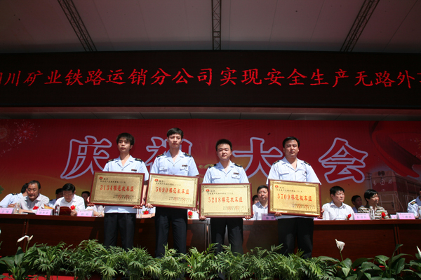 運銷分公司取得安全生產(chǎn)無路外事故1000天表示衷心地祝賀,對各位來賓表示感謝。他說,鐵運分公司成立于1989年11月,現(xiàn)管轄12個車站,并有14個機車組。由于礦區(qū)鐵路環(huán)境復(fù)雜,設(shè)備陳舊,彎道多,瞭望條件差等諸多原因,給礦區(qū)鐵路安全帶來巨大壓力。但鐵運分公司一班人以壓力為動力,圍繞“雙零”目標(biāo),堅持以人為本,狠抓管理,抓路外安全保穩(wěn)定,以路外保路內(nèi),不斷加大安全硬件投入,深入開展系列安全活動,營造了人人抓安全,全員防事故的的濃厚氛圍。順利實現(xiàn)安全生產(chǎn)無路外事故1000天,為礦業(yè)公司標(biāo)樹了一個新的里程碑。他希望該公司繼續(xù)發(fā)揚成績,總結(jié)經(jīng)驗,再接再厲,高標(biāo)定位,防范路外事故。要牢固樹立抓路外安全就是抓效益,就是抓管理的理念,充分認(rèn)識路外安全工作的長期性、艱苦性、復(fù)雜性,不斷強化企業(yè)文化建設(shè),樹立安全品牌,努力提升整體管理水平向更高標(biāo)準(zhǔn)邁進。防范路外事故,只有起點,沒有終點。要以此次慶祝活動為契機,瞄準(zhǔn)新目標(biāo),再創(chuàng)新輝煌,以優(yōu)異的成績迎接黨的十八大的勝利召開。