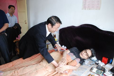 編者按:5月25日,陜西省作家協(xié)會(huì)副主席、著名作家莫伸,作家高亞?wèn)|和陜西煤業(yè)化工集團(tuán)公司企業(yè)文化部部長(zhǎng)孫鵬在鴨口煤礦公司黨委書(shū)記蘭阿利的陪同下深入銅川礦業(yè)鴨口煤礦公司調(diào)研采風(fēng)期間,登門慰問(wèn)了該礦身殘志堅(jiān)、自強(qiáng)不息的“輪椅詩(shī)人”王鐵毛。