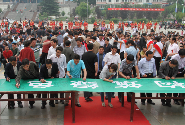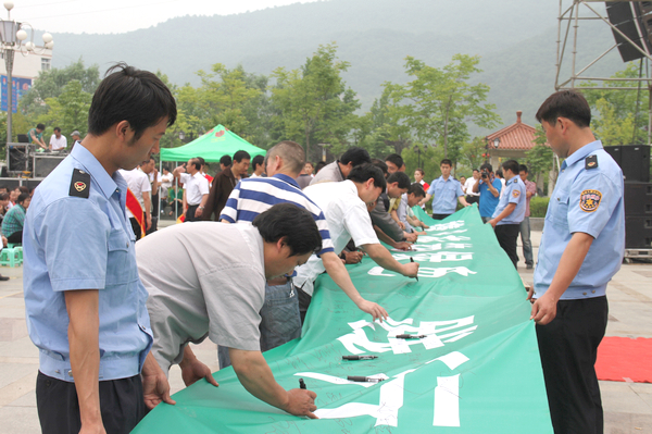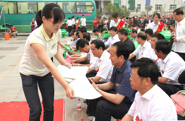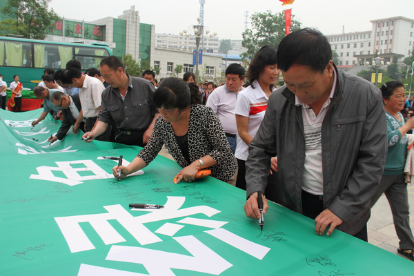 接著,銅川市政協(xié)副主席靳賢孝、下石節(jié)礦黨委書記李國璧等環(huán)保志愿者在印有“攜手環(huán)保,構(gòu)筑綠色,踐行文明”字樣的橫幅上鄭重簽名。該礦青年志愿者還向出席活動儀式的領(lǐng)導(dǎo)和干部職工及家屬散發(fā)了3000多份環(huán)境保護(hù)宣傳材料和1000多個印有“保護(hù)環(huán)境,人人有責(zé)”字樣的環(huán)保手提袋。