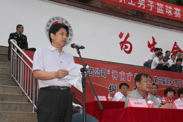 陜西煤業(yè)化工集團(tuán)公司副總經(jīng)理魏鐵軍致開幕詞,他說,陜西煤業(yè)化工集團(tuán)公司“神南礦業(yè)杯”第三屆職工男子籃球賽銅川賽區(qū)的比賽正式拉開帷幕,這是集團(tuán)公司廣大干部職工文化體育生活中的一件大喜事。他代表集團(tuán)公司和大賽組委會,向各各參賽代表隊和全體教練員、運動員、裁判員、工作人員及現(xiàn)場觀戰(zhàn)的職工家屬,表示熱烈的歡迎和誠摯的問候,向大力支持本次比賽的銅川礦業(yè)公司表示衷心的感謝。魏鐵軍要求全體運動員嚴(yán)格遵守比賽規(guī)則,發(fā)揚頑強拼搏、團(tuán)結(jié)互助的精神,賽出競技水平,賽出道德風(fēng)尚,賽出個性風(fēng)采,賽出團(tuán)結(jié)友誼,充分展現(xiàn)集團(tuán)公司廣大干部職工熱愛健身運動、積極奮發(fā)向上的精神風(fēng)貌。同時,希望全體裁判員和工作人員要堅持公開、公正、公平的原則,嚴(yán)肅比賽紀(jì)律,認(rèn)真負(fù)責(zé)地做好各項工作,確保比賽順利進(jìn)行。希望通過本屆籃球賽的舉辦,在全集團(tuán)公司進(jìn)一步掀起全民健身的熱潮,鼓舞廣大干部職工牢固樹立終身運動的觀念,用陽光的心態(tài)和健康的身體,為集團(tuán)公司實現(xiàn)新的跨越發(fā)展再做新的貢獻(xiàn)。
