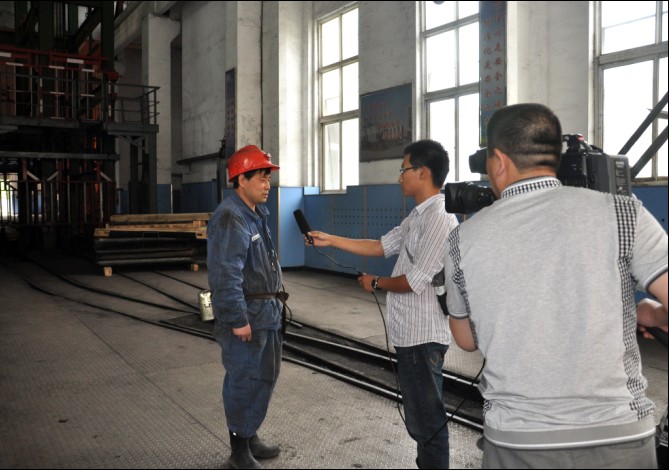 記者對(duì)礦井區(qū)隊(duì)管理人員進(jìn)行現(xiàn)場(chǎng)采訪