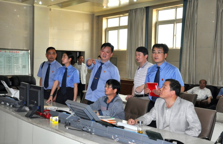 巡查組在該礦調(diào)度中心查看安全監(jiān)控系統(tǒng)