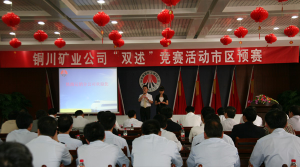 繼5月16日、18日分別在下石節(jié)、金華山礦舉辦了銅川礦業(yè)公司“雙述”競賽活動北區(qū)、東區(qū)兩場預(yù)賽后,5月22日下午在鐵運公司舉辦了銅川礦業(yè)公司“雙述”競賽活動市區(qū)預(yù)賽,來自供應(yīng)處、地勘公司、鐵運分公司、救護大隊、機電分公司、多經(jīng)公司、機關(guān)工委、一五三廠等輔助單位的8名選手參加了比賽。