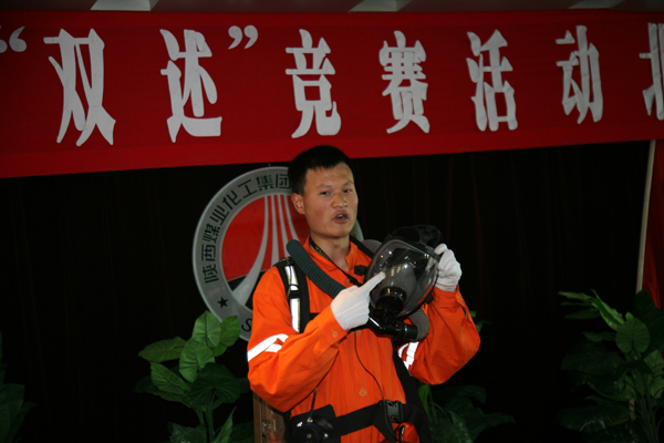 敬禮!“我是下石節(jié)礦通維區(qū)瓦斯檢查員趙新潮。從事瓦斯檢查工作11年,持證上崗,證件有效期2011年7月—2014年7月……”這是5月16日銅川礦業(yè)公司舉行的“雙述”大賽北區(qū)預(yù)賽的現(xiàn)場(chǎng)。