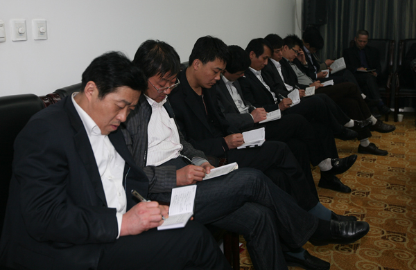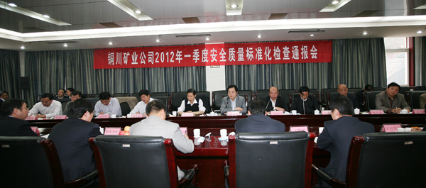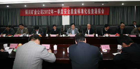 4月9日下午2點(diǎn)30分,銅川煤業(yè)賓館二樓會議室召開銅川礦業(yè)公司2012年一季度安全質(zhì)量標(biāo)準(zhǔn)化檢查通報會。公司副總經(jīng)理劉水利,副總孔令義、吳新科、賈林安、蘇啟慧、惠東旭及安監(jiān)部劉彥明、機(jī)電部石明賢、總調(diào)度室何思仁、宣傳部李德強(qiáng),八對生產(chǎn)礦井礦長、機(jī)電副礦長、安監(jiān)處長、質(zhì)量標(biāo)準(zhǔn)化辦公室主任共60余人參加會議。會議由公司副總、安監(jiān)部部長延永華主持。