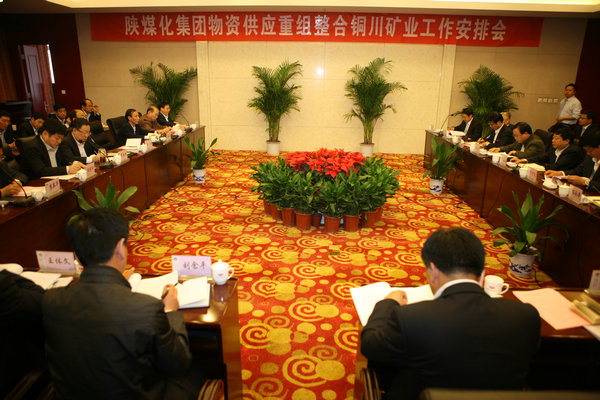 4月16日下午,陜煤化集團(tuán)物資供應(yīng)重組整合銅川礦業(yè)工作安排會(huì)在煤業(yè)賓館召開.陜煤化集團(tuán)公司工程與物資部總經(jīng)理王建立,陜煤化物資集團(tuán)公司董事長(zhǎng)、黨委書記沈蘭禹,黨委副書記、副總經(jīng)理惠維淵,副總經(jīng)理于守禮,銅川礦業(yè)公司總經(jīng)理宋志剛,黨委書記黃河,副總經(jīng)理封建利及相關(guān)業(yè)務(wù)處室、基層單位相關(guān)負(fù)責(zé)人參加了會(huì)議。