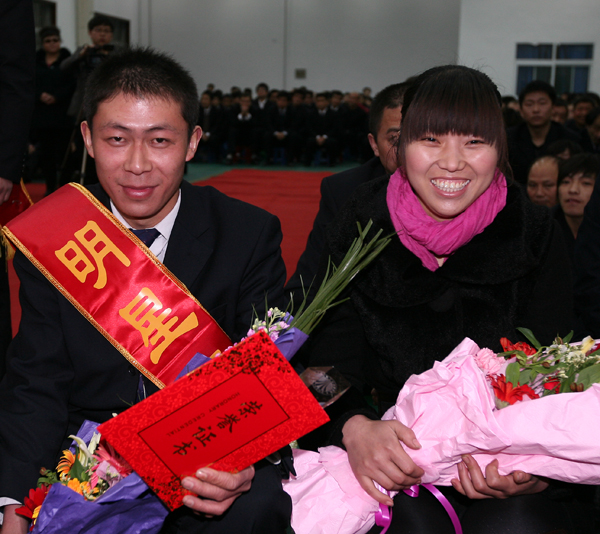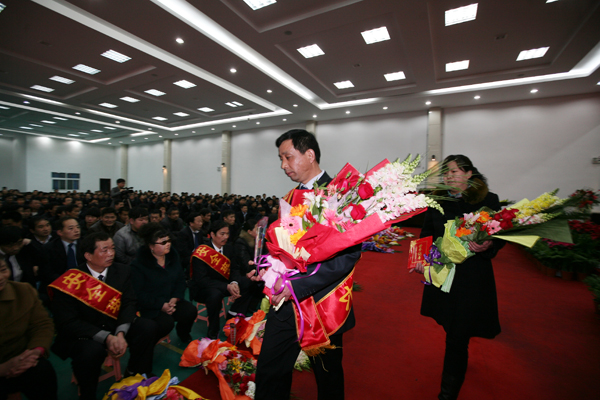 會上,該礦總工程師雷鐵山宣讀了對“安全班組長”、“明星班組長”的表彰決定。隨后,他們別具一格,把安全、明星班組長分成五組,每位安全、明星班組長兩人一組,夫妻同臺受獎,主持人介紹先進(jìn)事跡,出席會議的該礦黨政領(lǐng)導(dǎo)為受表彰的班組長頒發(fā)獎杯和榮譽(yù)證書,與他們夫妻親切握手,表示祝賀,送上祝福,獻(xiàn)上鮮花,并在適當(dāng)時(shí)候組織夫妻出外學(xué)習(xí)考察,增長見識,開闊眼界。此時(shí),整個(gè)禮堂報(bào)以熱烈的掌聲,臺上臺下干群情深,其樂融融,高興、激動、欣喜、歡樂的氣氛、熱烈的掌聲在大禮堂經(jīng)久不息。接著,綜采隊(duì)生產(chǎn)二班石峰、選運(yùn)區(qū)班長劉軍分別發(fā)言介紹經(jīng)驗(yàn)。
