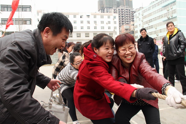 為慶祝 “三八”婦女節(jié),豐富、活躍公司直屬單位機(jī)關(guān)女職工文化生活,提高女職工身心健康水平,增強(qiáng)女職工的凝聚力,3月8日下午,礦業(yè)公司直屬單位工會在機(jī)關(guān)辦公院羽毛球場舉辦了“慶‘三八’女職工拔河比賽”活動。直屬單位工委副書記孫曉明、副書記兼工會主席南民生等參加了比賽活動,并對比賽活動進(jìn)行了精心組織。