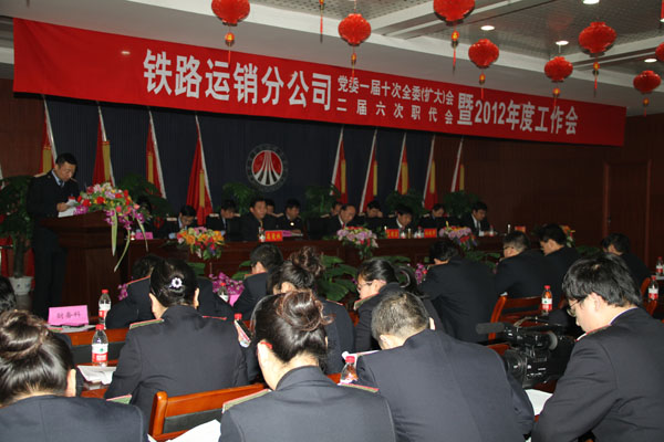 2月21、22日,銅川礦業(yè)公司鐵路運銷分公司機關(guān)二樓大會議室鮮花吐艷,氣氛熱烈。該分公司黨委一屆十次全委(擴大)會、二屆六次職代會暨2012年工作會正在隆重舉行。鐵路運銷分公司黨委書記高德富、公司經(jīng)理孫建軍、公司黨委副書記、紀委書記、工會主席高愛林、公司安監(jiān)處長陸新銅出席了會議。公司第二屆六次職工代表,各基層單位負責(zé)人,機關(guān)部門負責(zé)人、共計150余人參加了會議。