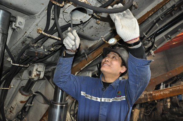 春節(jié)期間,東坡礦職工精心檢修2105工作面回收支架(劉偉攝)