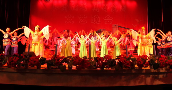 熱情奔放的歌舞組合《盛世歡歌》拉開了整臺(tái)晚會(huì)的序幕。歌曲《自由飛翔》《五月散花》,舞蹈《自豪的銅煤人》《煤城秧歌》《超越》,表演唱《放飛夢(mèng)想》,快板《夸夸俺們的女工礦嫂服務(wù)隊(duì)》《和諧銅煤春意濃》,樂器表演《巴比倫河》《櫻桃樹下》《紅旗飄飄》,小品《幸福水》《找領(lǐng)導(dǎo)》,三句半《公路改造暖人心》,相聲劇《溫暖》等節(jié)目各具特色、異彩紛呈,這是公司各基層各單位在企業(yè)文化建設(shè)方面取得成就的一次集中展示;這是對(duì)公司“快樂工作,體面生活”的一場(chǎng)完美詮釋;這更是公司全體干部職工真誠(chéng)祝愿和對(duì)幸福生活的美好憧憬。動(dòng)聽的歌聲,優(yōu)美的舞姿,精湛的技藝,不時(shí)贏得全場(chǎng)陣陣掌聲。銅煤合唱團(tuán)豪邁激揚(yáng)的《瑤山夜曲》和《國(guó)家》的歌聲,將整場(chǎng)晚會(huì)推向了高潮。