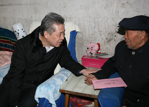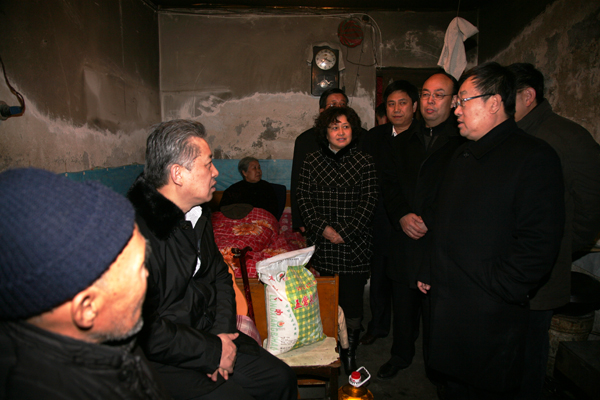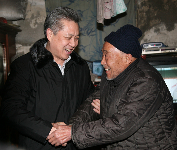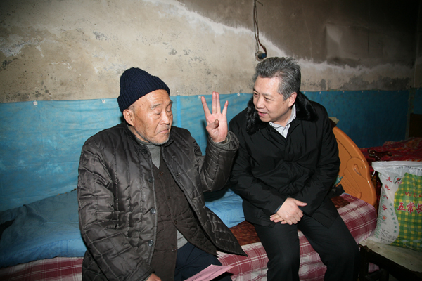 在關(guān)長喜家中,華煒握著關(guān)長喜的手關(guān)切地噓寒問暖。當(dāng)?shù)弥救嘶加行呐K病,其老伴患腦溢血花費(fèi)3萬多元,至今癱瘓在床,華煒非常同情地說,困難是暫時的,有困難找社區(qū),找組織解決,今天給你們送來米面油和1000元慰問金,希望你們過個好年。隨即,華煒又問宋志剛局長和社區(qū)主任司金萍,他們的住房條件不好,是不是都分上房子了?宋志剛說,像關(guān)師傅這些退休的老職工,都屬于棚戶區(qū)改造的搬遷戶,都已經(jīng)登記過了,關(guān)師家的房子已經(jīng)分過了,今年就可入住了。