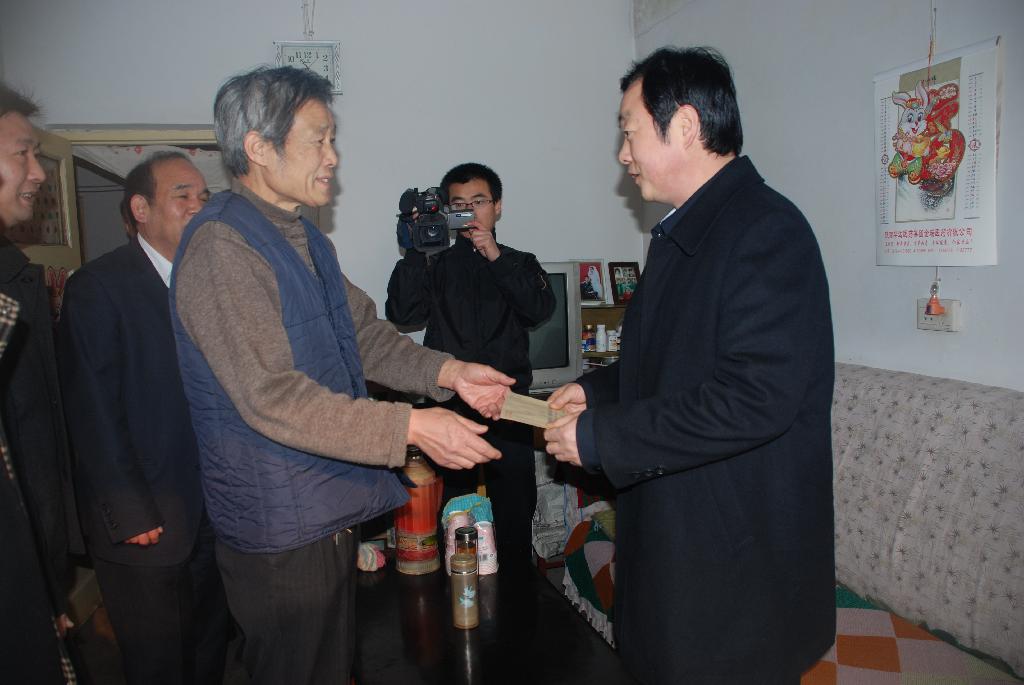 他們在該礦礦長李福錦、黨委書記劉保社及礦有關(guān)領(lǐng)導(dǎo)陪同下,帶著面粉、大米、食用油和慰問金,來到了該礦困難職工陳金川家中。當(dāng)了解到陳金川和妻子在去年都相繼住院的情況后,劉水利握著陳金川的手說,你曾經(jīng)為煤礦事業(yè)作出過貢獻(xiàn),我們不會忘記你的,現(xiàn)在你有困難,我們理所當(dāng)然應(yīng)該幫助你,今天我代表公司黨政向你表示新年的慰問。聽到這里,陳金川感動(dòng)得熱淚盈眶。臨走時(shí),劉水利鼓勵(lì)陳金川全家要堅(jiān)強(qiáng)起來,困難會克服的。隨后,一行人來到該礦退休職工張德純家里進(jìn)行慰問,劉水利和他們一家進(jìn)行了親切的交談,詳細(xì)了解張德純家中生活情況。接著劉水利來到了該礦困難黨員楊世剛家里進(jìn)行了慰問,送去了面粉、大米、食用油和慰問金,把組織的溫暖送到了職工心中。