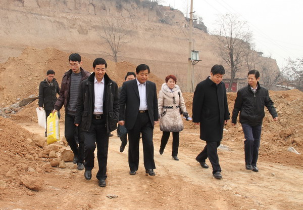 在王石凹礦家屬區(qū)慰問途中