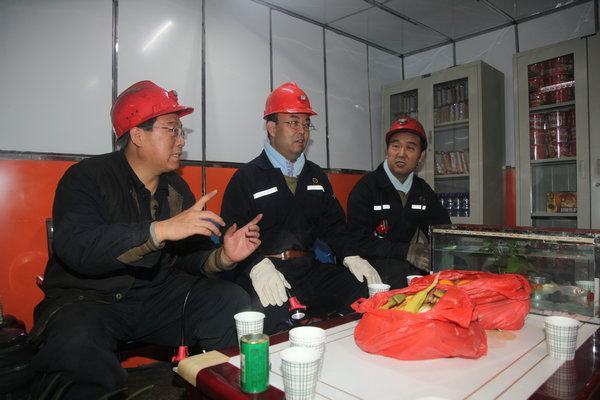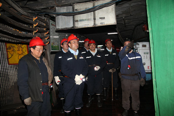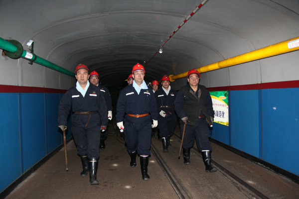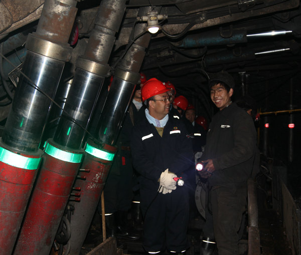 在井下,黃書記每到一處都與職工親切交談,詳細了解職工工作和生活情況,在綜采一隊井下超市,黃書記與職工一起品茶談心,觀看了該隊職工自編自演的標準化宣傳快板后,黃書記對宣傳員提出立足崗位,創(chuàng)新形式、豐富內(nèi)容的指導性意見。他同時強調(diào),在大力宣傳企業(yè)文化建設實際效果的同時,要把企業(yè)文化建設與安全、生產(chǎn)、穩(wěn)定等工作緊密結(jié)合,把握機遇,采取有力措施,保證穩(wěn)步提升。升井后,黃書記一行實地查看了該礦地面設備庫、主副井及供應站材料庫,在聽取了該礦黨政領導地面建設規(guī)劃后,強調(diào)要按照科學合理,注重實效的原則開展工作,不斷改善礦區(qū)面貌,創(chuàng)造靚麗舒適的生產(chǎn)生活環(huán)境,使廣大職工群眾共享企業(yè)發(fā)展成果,真正實現(xiàn)“快樂工作、體面生活”。