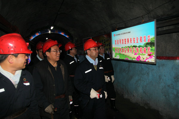 黃書記一行在井下實地查看該礦安全文化建設情況