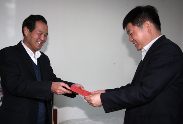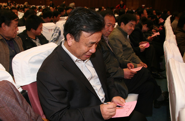 代表選區(qū)委員會(huì)向當(dāng)選為王益區(qū)第九屆人民代表的公司副總經(jīng)理封建利頒發(fā)代表證