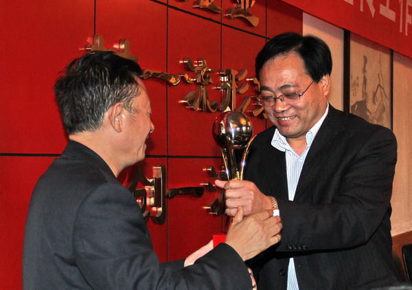 新聞報道工作優(yōu)勝單位的鐵路運銷分公司頒發(fā)獎杯