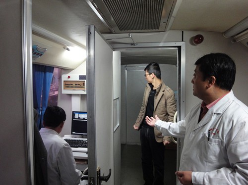 礦業(yè)公司黨政堅(jiān)持“以人為本”的思想理念,不斷加大各礦區(qū)職業(yè)病健康檢查預(yù)防力度,確保煤礦采掘一線職工身體健康,使職業(yè)病與其它疾病能夠做到定期普查、及時(shí)診治,達(dá)到源頭預(yù)防的目的,近日,公司組織局中心醫(yī)院專業(yè)人員和專用“健康體檢車”等力量,深入礦區(qū),為采掘一線職工現(xiàn)場(chǎng)檢查身體,深受礦區(qū)職工好評(píng)。(圖為醫(yī)院專業(yè)人員在“健康檢查專用車”上和區(qū)隊(duì)辦公樓內(nèi)為陳家山礦職工做職業(yè)病及健康檢查)
