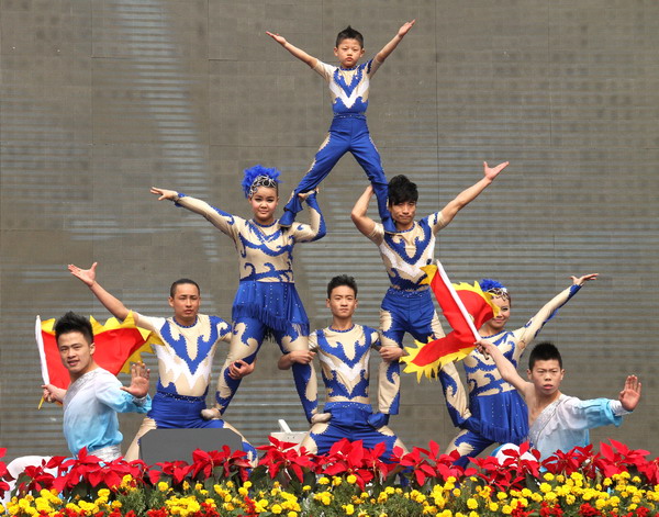 慶典儀式開始前,與會(huì)領(lǐng)導(dǎo)及來賓饒有興致地觀看了王石凹礦輝煌50年成果展和職工書畫攝影展。慶典儀式結(jié)束后,大家還共同觀看了由西安藝典藝術(shù)團(tuán)、深圳鳳凰歌舞團(tuán)、河南塔溝少林武校、彩虹女子樂坊同臺(tái)演出,特邀陜西電視臺(tái)“都市快線”欄目主持人大民等主持的大型慶典文藝節(jié)目。