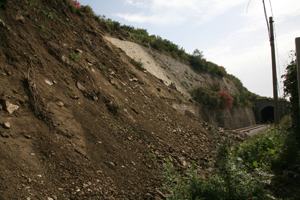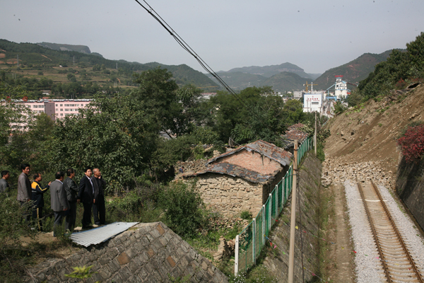 9月上旬連日的降雨,致使銅川礦區(qū)鐵路專用線多處滑坡。9月27日一早,鐵運(yùn)公司北區(qū)段工務(wù)人員在例行檢查時(shí)發(fā)現(xiàn)陳家山專用鐵路線K4km+950m處東面護(hù)坡滑塌,接到報(bào)警后,北區(qū)段黨政領(lǐng)導(dǎo)立即組織人員上山進(jìn)行勘察發(fā)現(xiàn)從路基到山頂約300米的整個(gè)山體按山勢(shì)西北方向側(cè)滑,滑動(dòng)土石量約7-10萬(wàn)方。險(xiǎn)情發(fā)生后,北區(qū)段向上級(jí)匯報(bào),鐵運(yùn)公司經(jīng)理孫建軍立即下達(dá)命令,啟動(dòng)“三防”預(yù)案,封鎖現(xiàn)場(chǎng)以外150米的鐵路線路,指定專人設(shè)立警示路牌,晝夜24小時(shí)把守重要路段,觀察現(xiàn)場(chǎng)情況。并及時(shí)與陳家山礦方聯(lián)系。陳家山礦黨政領(lǐng)導(dǎo)多次到現(xiàn)場(chǎng)觀察險(xiǎn)情,組織人員疏散10戶轄區(qū)住戶。