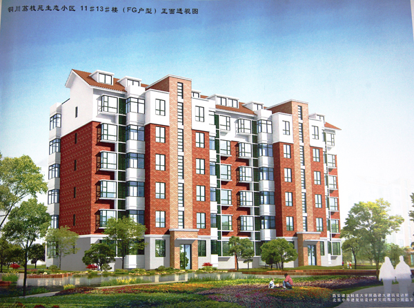 銅川荔枝園小區(qū)11#、13#樓正面透視圖