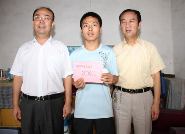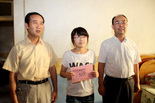 黃河書(shū)記把組織的關(guān)懷和愛(ài)心送到特困生張薇的手中