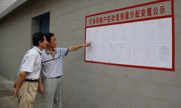銅川礦業(yè)公司有關(guān)棚戶區(qū)改造房屋分配安置政策出臺(tái)后,玉華煤礦黨政領(lǐng)導(dǎo)班子多次召開(kāi)會(huì)議,認(rèn)真學(xué)習(xí)公司黨政領(lǐng)導(dǎo)關(guān)于棚戶區(qū)改造房分配安置的工作要求精神,認(rèn)真研究此次棚戶區(qū)改造房分配安置相關(guān)政策,成立領(lǐng)導(dǎo)機(jī)構(gòu),設(shè)立棚改房安置工作辦公室,制定工作方案,統(tǒng)一宣傳、組織和協(xié)調(diào)此次棚戶區(qū)改造安置各項(xiàng)工作,確保此次棚改工作的順利進(jìn)行。連日來(lái),礦棚改辦公室人員在全礦廣大職工中廣泛開(kāi)展棚改政策的宣傳工作,印制大量的棚改安置政策宣傳提綱,分發(fā)到基層區(qū)隊(duì)、班組和機(jī)關(guān)各部門(mén),充分利用職工班前會(huì)和職工大會(huì)進(jìn)行學(xué)習(xí)宣傳,并在宣傳櫥窗、學(xué)習(xí)園地等開(kāi)辦“棚戶區(qū)改造房安置宣傳專欄”,在職工上下班集中的區(qū)域、地段張貼宣傳提綱和學(xué)習(xí)宣傳單,大力開(kāi)展政策宣傳工作。組成政策宣傳和咨詢工作小組,在棚改辦公室設(shè)立咨詢室,擺放桌椅、茶水等,對(duì)前來(lái)詢問(wèn)的職工家屬進(jìn)行政策的宣傳解釋,使帶著疑惑不解之心的職工家屬,明晰了政策,愉快辦理棚戶區(qū)改造安置房的相關(guān)手續(xù)。目前,通過(guò)廣泛宣傳,使廣大職工家屬家喻戶曉了棚改房分配安置的有關(guān)政策,按照規(guī)定要求平穩(wěn)辦理棚改房購(gòu)置的相關(guān)手續(xù),礦區(qū)生產(chǎn)生活秩序井然。